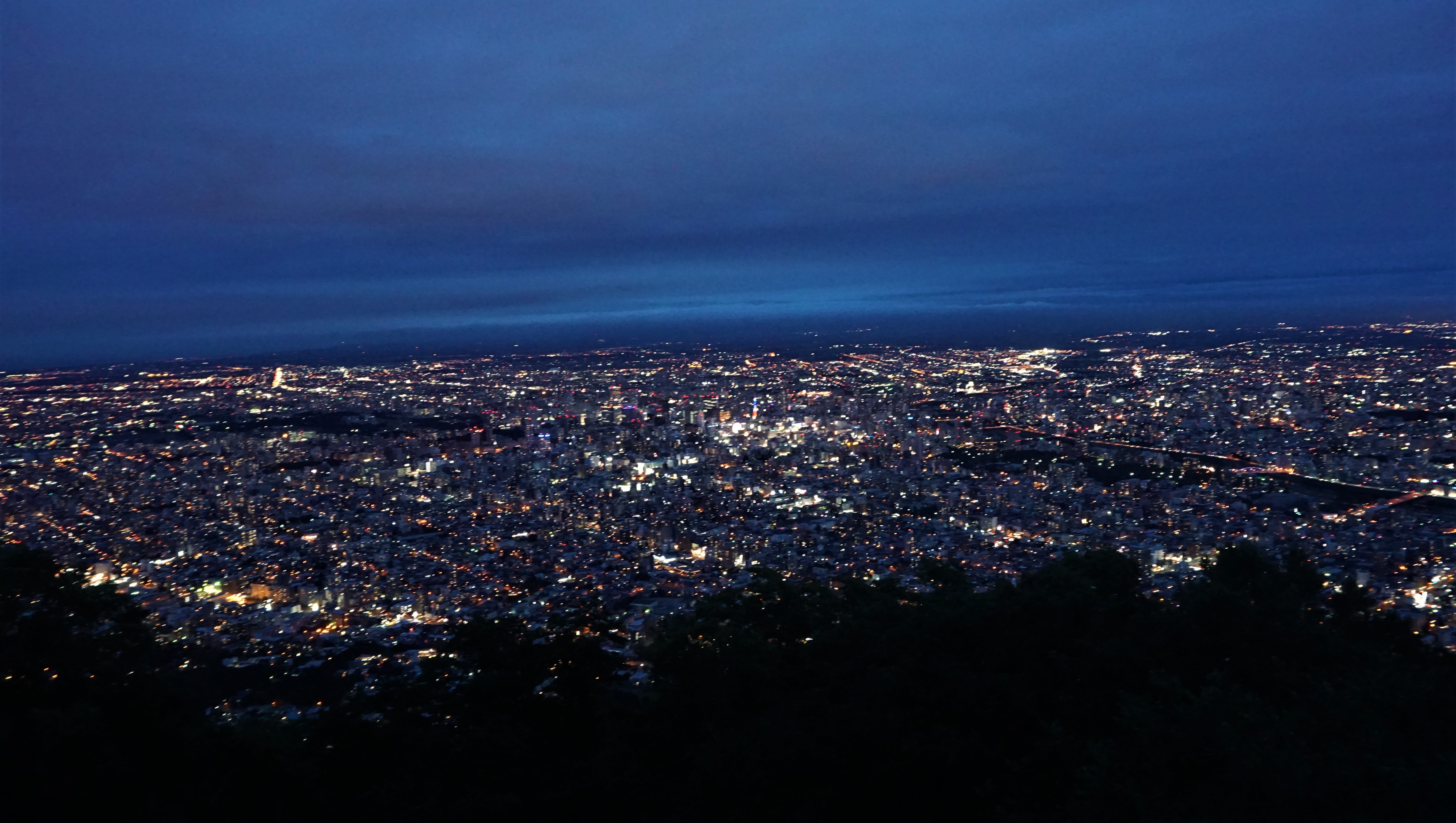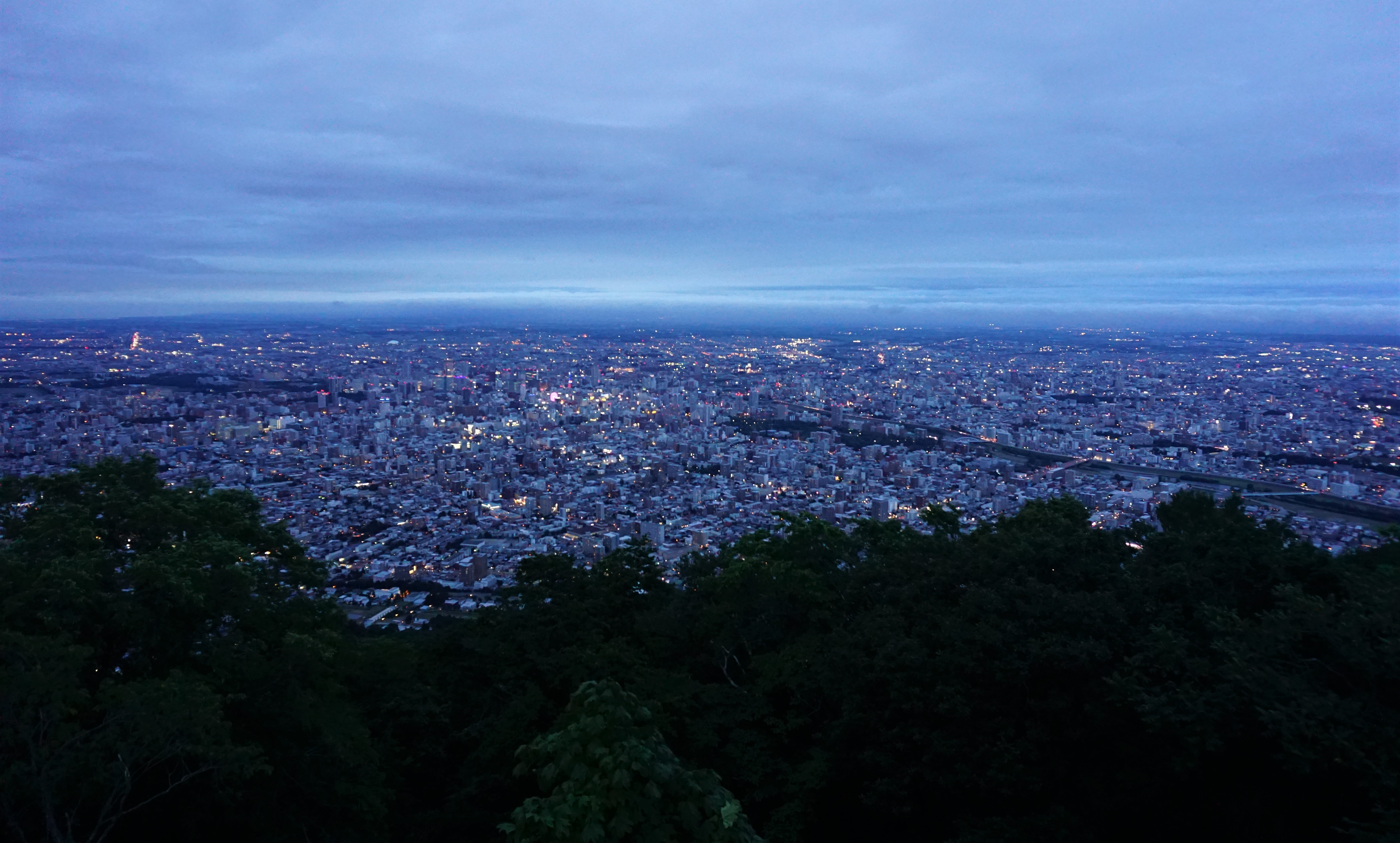 Pour la descente, je n’ai pas eu le courage de reprendre le chemin dans la forêt. Ça aurait pu être dangereux puisqu’il n’est pas éclairé et que je n’avais pas de lampe avec moi. Et puis pour être honnête, mes pieds me faisaient beaucoup trop souffrir pour m’infliger une autre heure de marche. J’ai donc pris le téléphérique pour le retour. Je n’ai pas regretté car on a une autre vue de Sapporo qui se rapproche au fur et à mesure de la descente. Cela donne l’impression d’être englouti par la ville.