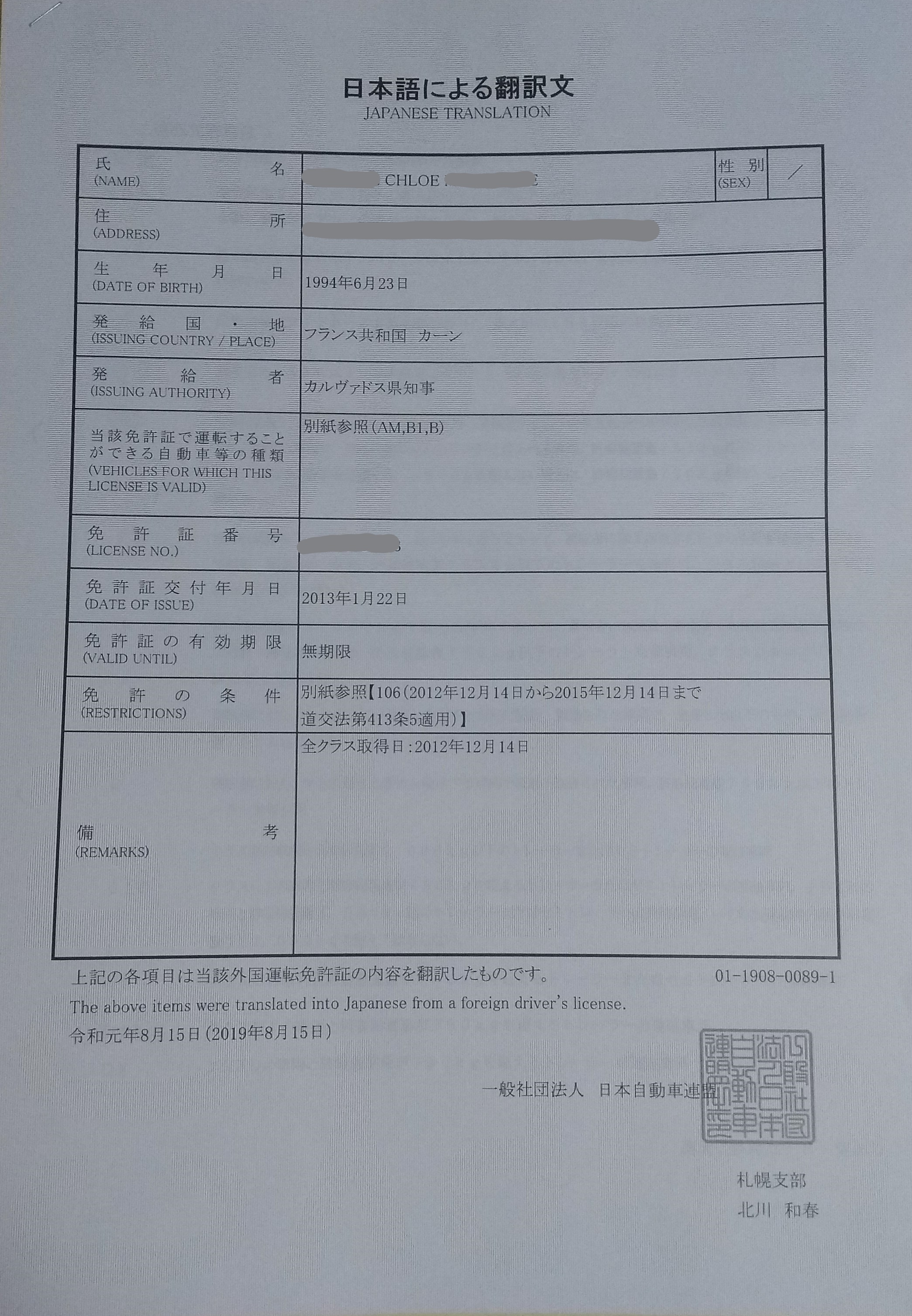 Avant de partir pour le Japon, je me suis rendue sur le site du service public pour savoir comment me procurer un permis international. J’ai fait la demande en ligne et ai même appelé pour faire part de ma situation. En effet, le délai de délivrance était de plusieurs semaines et je devais être sûre que je pouvais le recevoir même une fois au Japon. J’ai été plusieurs fois en contact avec différentes personnes et aucune d’elles ne m’a spécifié que le permis international FRANÇAIS n’était pas reconnu au Japon. Pas une seule fois, je n’ai été avertie que je faisais une erreur.